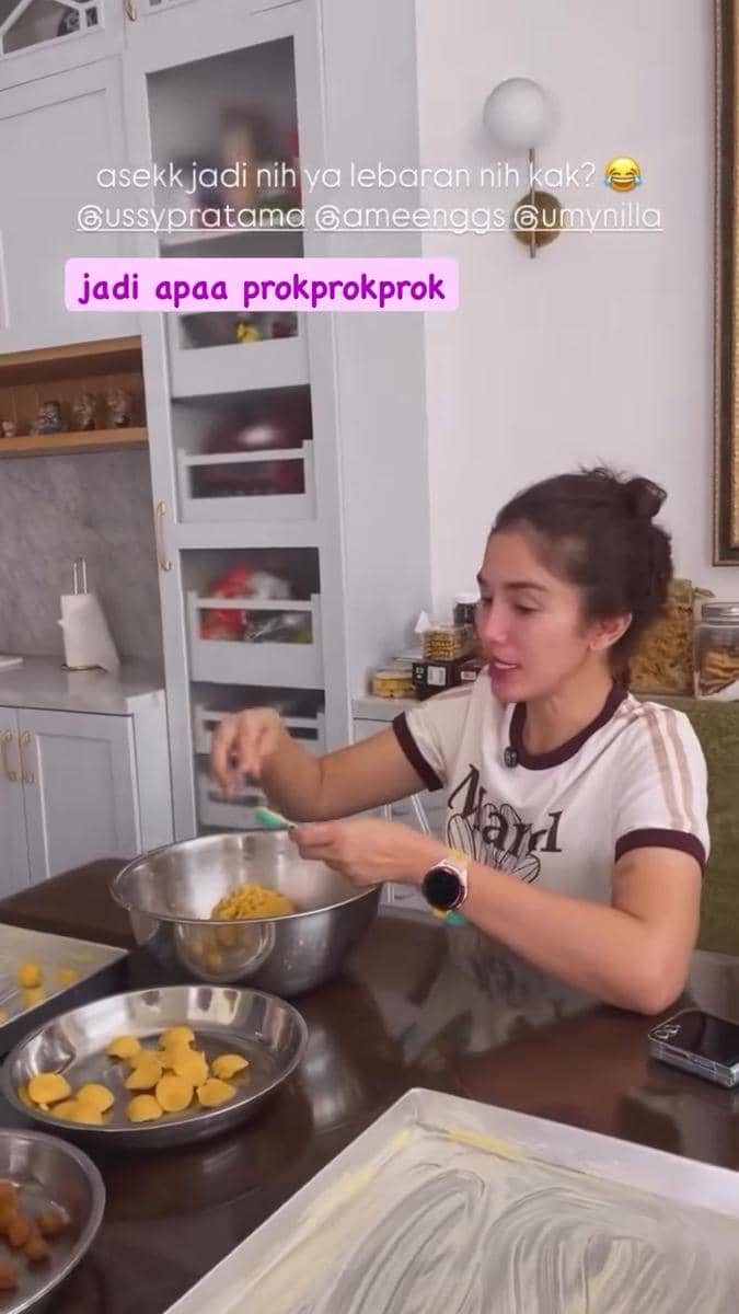 Meskipun ditinggal ART mudik, Asmirandah tetap merasakan euforia Lebaran. Ia ikut serta membuat nastar meski dalam kondisi yang sedikit melelahkan.